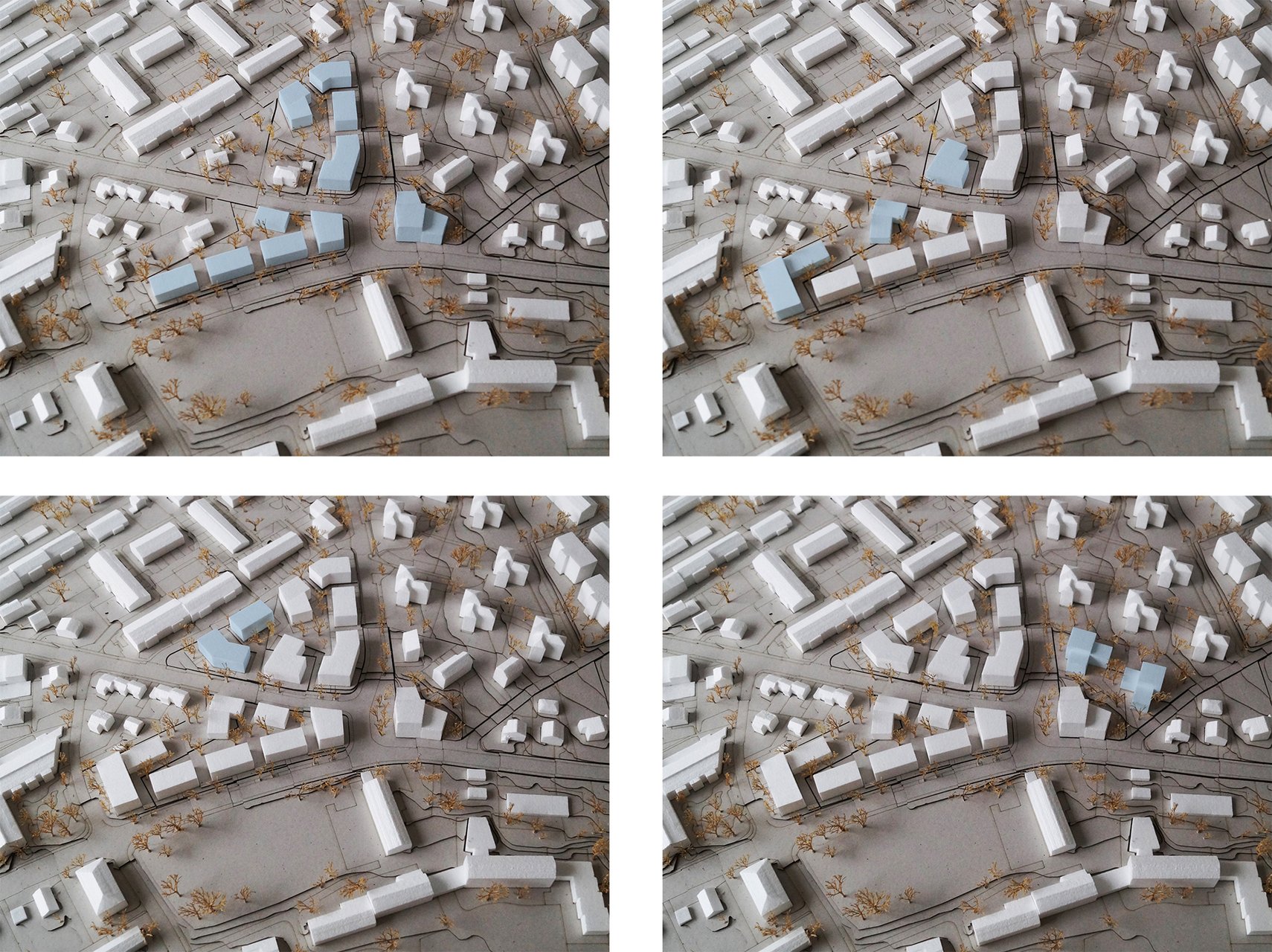 Mit der Studie sollten die Lage und die angemessene Dimension eines kleinen Quartiersplatzes ausgelotet sowie für drei angrenzende Bereiche Bebauungsmuster entwickelt werden.