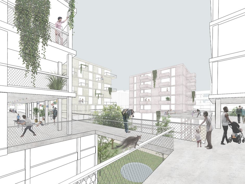 Beim Vorschlag handelt es sich um einen konzisen und sorgfältig durchgearbeiteten Beitrag, der auf vielen Ebenen durch seine Radikalität begeistert, indem er das ehemalige Schwemmland konsequent als zusammenhängenden Grünraum interpretiert, dem kompakt geschnittene Bebauungsinseln von hoher Dichte und urbaner Lebensqualität eingeschrieben werden."