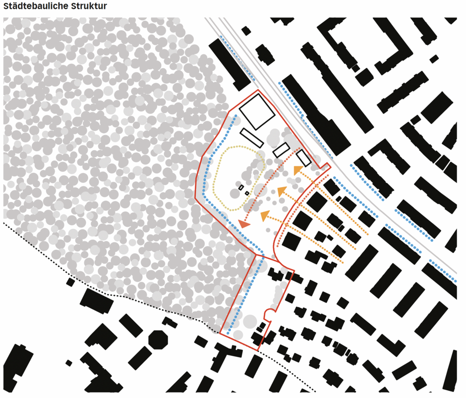 Den wesentlichen Ausgangspunkt der Studie bildet eine detailierte gross- und kleinmassstäbliche Analyse der Situation bzgl. räumlicher, gesellschaftlicher, ökonomischer und ökologischer Aspekte. Die wesentliche Schlussfolgerung der Analyse bildet die Festlegung eines Baufelds ausschliesslich entlang der Bahngleise (Verbleib von Freiraum) und die Forderung nach einer verbesserten infrastrukturellen Anbindung des Areals (Vorschlag: Fussgängerbrücke über die Bahngleise zum Bahnhof).